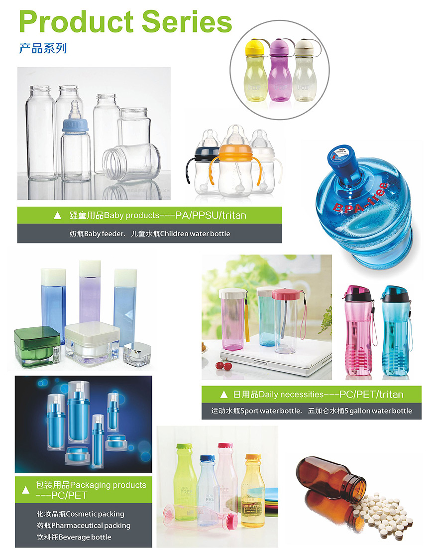 瓶口定位精,瓶子輕量化,合模線不顯眼;適應異型及外觀質量高的要求。