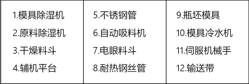 高速瓶坯生產(chǎn)線設(shè)備配置: