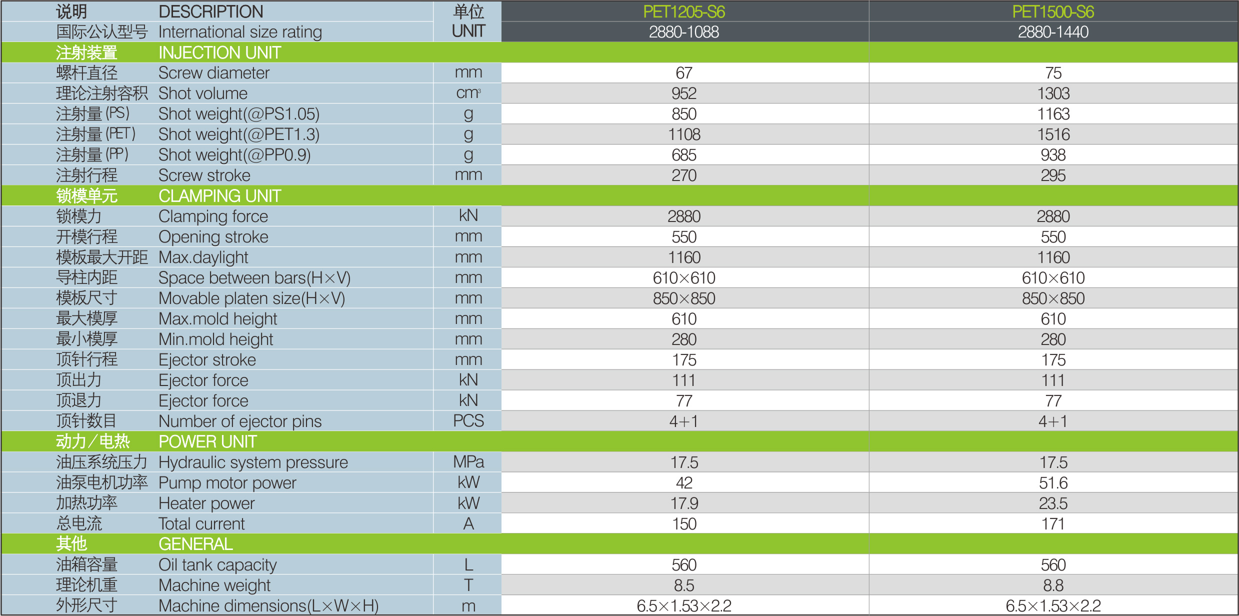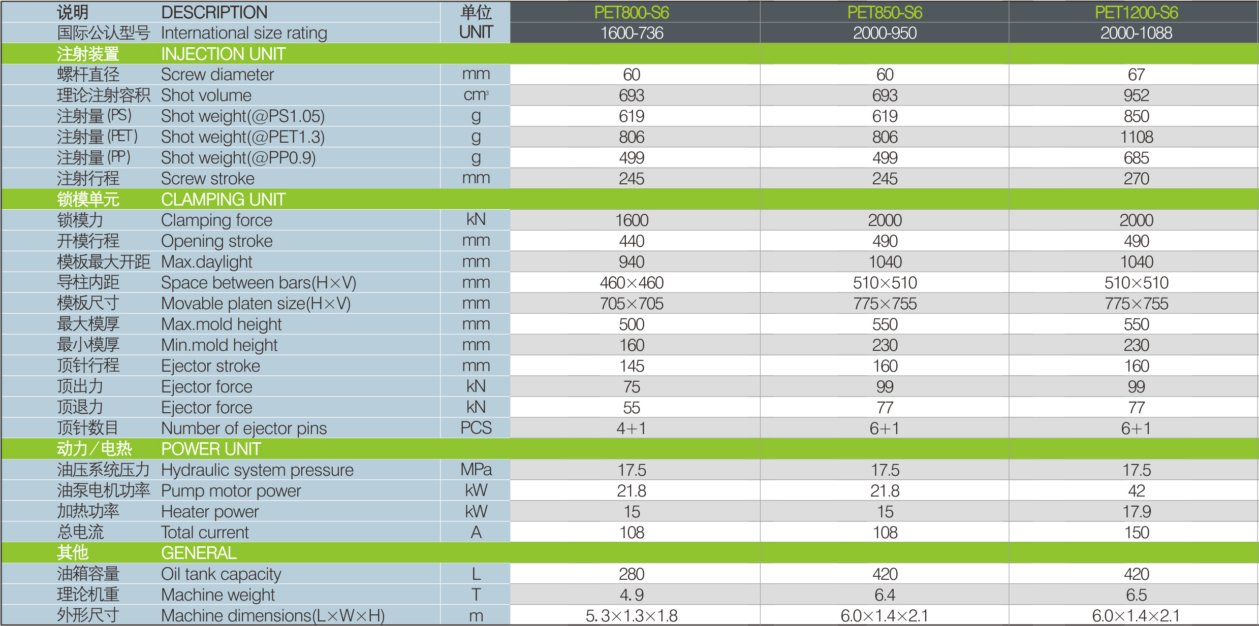 提供PET瓶坯全方位完善而成熟的解決方案,注射量從800-4500g的50多款不同規(guī)格型號(hào)PET瓶坯專用注塑機(jī)。