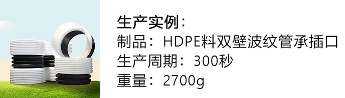 5、適宜生產(chǎn)PP或PE的雙層波紋管的管接頭,不同管徑、不同材料的波紋管及不限制長(zhǎng)度的波紋管承插口;